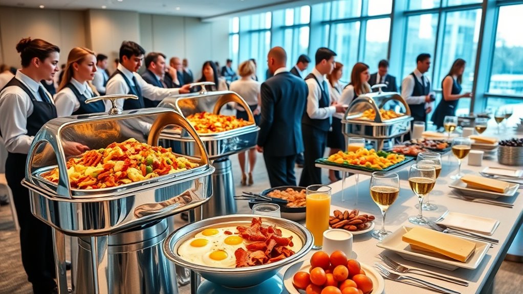 You can guarantee food safety and quality by focusing on proper food handling practices, such as maintaining correct temperatures and avoiding cross-contamination. Catering companies implement strict quality assurance protocols, including regular staff training and supplier audits. They also use high-quality ingredients and proper storage methods to prevent spoilage. By adhering to these standards, they ensure your breakfast is safe, fresh, and delicious every time.