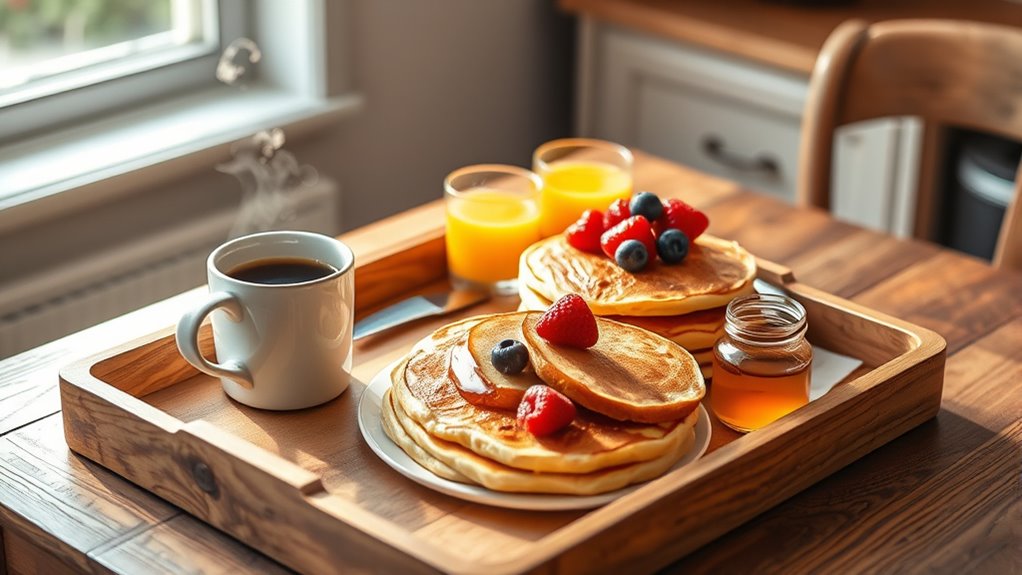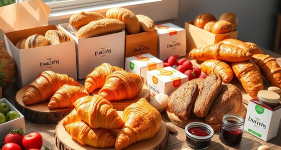 Imagine you’re ordering breakfast and need vegan and gluten-free options. Many services now cater to special dietary needs, including allergy accommodations. For example, a delivery company might offer vegan muffins and gluten-free granola, ensuring you enjoy a safe, satisfying meal. They customize orders to meet your dietary restrictions, making it easy to get a nutritious breakfast without worries. Always check with the provider to confirm they can accommodate your specific needs.