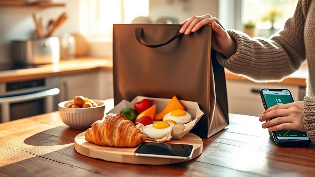 Future morning meal delivery will likely see more contactless options, making your experience safer and more convenient. You’ll also have greater control with customizable meal choices that suit your tastes and dietary needs. These trends aim to make breakfast delivery faster, safer, and more personalized for you. Additionally, innovations in delivery safety protocols will help ensure a secure experience for all users.