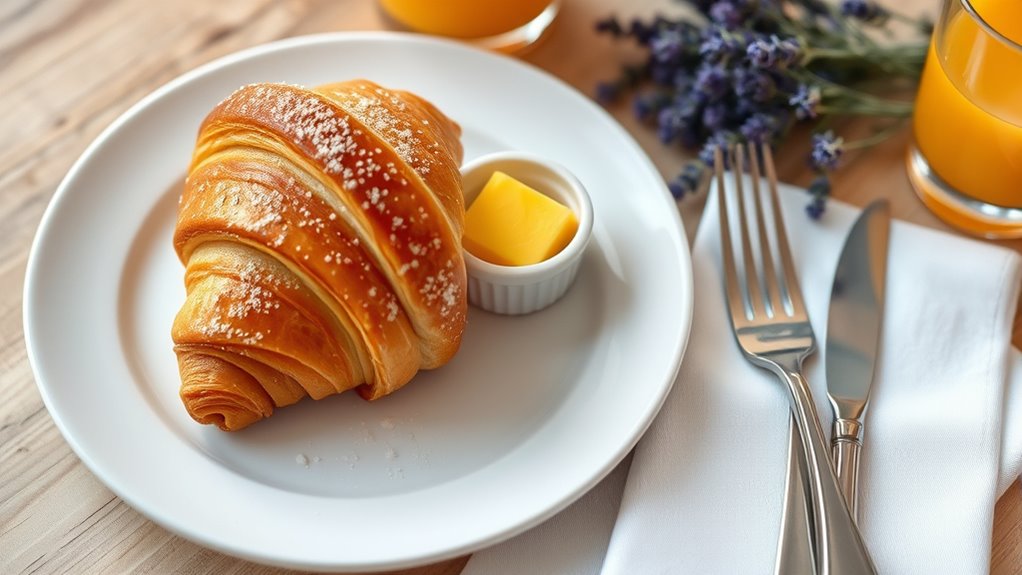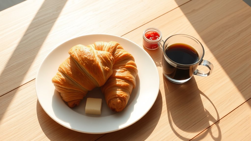 When choosing your croissant or pastry, pay attention to the flaky, buttery layers that define quality. You’ll notice a difference between artisanal options, which often have a richer texture, and commercial ones that can be more uniform. Picking the right kind elevates your breakfast experience instantly. Incorporating unique and wicked planters into your breakfast table decor can add a touch of artistry and personality to your morning setting.
