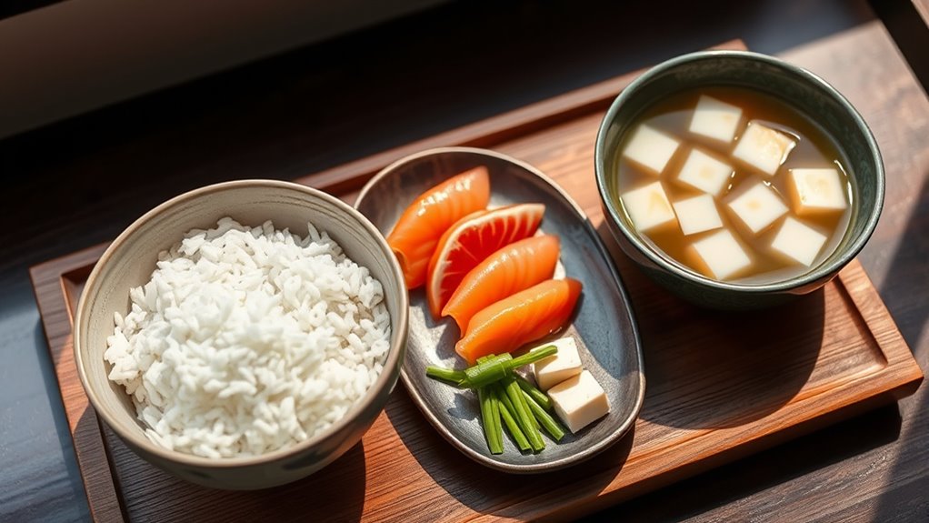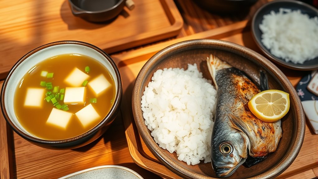 Japanese Asa-Gohan is a meaningful morning ritual centered around rice, fresh fish, and miso soup, reflecting centuries of tradition. You prepare these components mindfully, emphasizing seasonal ingredients and respect for nature. The practice promotes gratitude, balance, and presence during meals. By engaging in this simple yet profound ritual, you’ll connect with Japan’s cultural values and mindful eating principles. To discover more about this beautiful tradition, explore how the ceremony continues to evolve today.