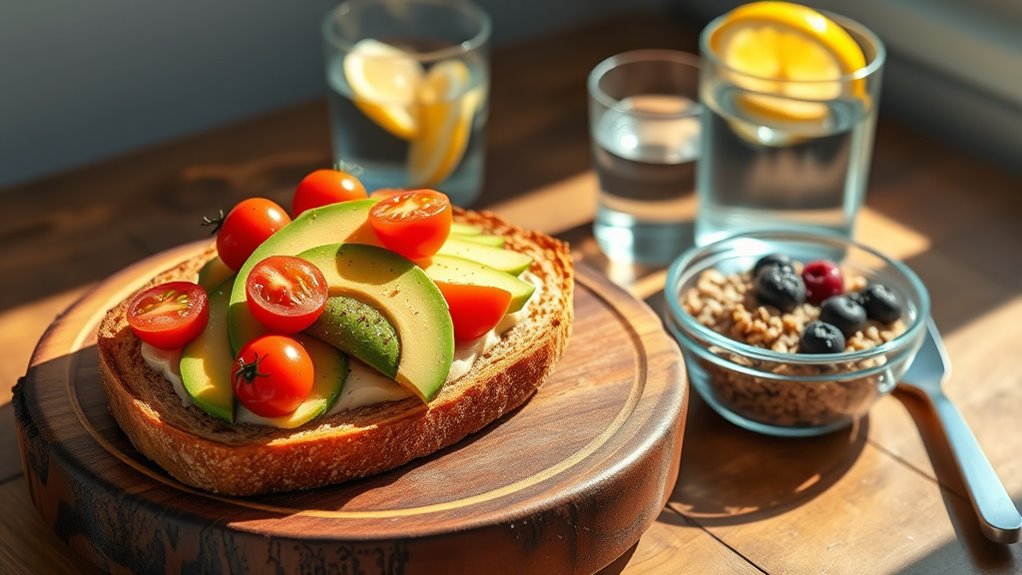 Your breakfast habits can markedly influence long-term cognitive decline prevention. By incorporating brain-boosting nutrients like omega-3s, antioxidants, and healthy fats into your morning meal, you support brain health. Meal timing strategies, such as eating a balanced breakfast within an hour of waking, help optimize nutrient absorption and energy levels. Consistently making smart breakfast choices can protect your cognitive function over time and promote better mental clarity and memory.