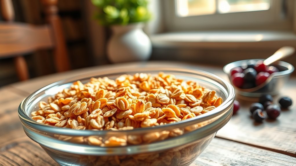 Protein levels vary widely among cereals, affecting how long you feel full and energized. Higher protein options can boost your satiety and support your nutritional needs, but balance is key. Consider your energy demands and dietary goals to choose the cereal that’s right for you. Additionally, selecting cereals with evidence-based techniques can help ensure you’re making informed choices for your overall health.