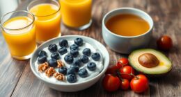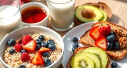 Yes, egg and avocado make a healthy breakfast! This nutrient-dense combo provides complete proteins and healthy fats, giving you energy and keeping you satisfied longer. Eggs are rich in essential vitamins like B12 and D, while avocados offer heart-healthy monounsaturated fats and fiber. Together, they support brain function and even help reduce anxiety. Plus, they promote skin health and aid in weight management. Enjoy them alongside whole grain toast or fresh greens for an even more balanced meal. If you're curious about the specific health benefits and preparation tips, there's plenty more to discover! For instance, the avocado nutritional benefits extend beyond just healthy fats—it’s also packed with potassium, which supports healthy blood pressure levels, and antioxidants that combat inflammation. Pairing creamy avocado with protein-rich eggs creates a powerful synergy, making it a go-to choice for fitness enthusiasts and busy mornings alike. Experiment with different seasonings or preparation styles to keep this breakfast staple exciting and delicious!