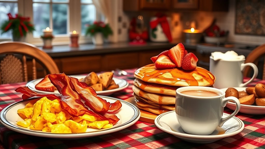 You find that breakfast traditions strengthen family bonds by creating cherished family rituals that everyone looks forward to each year. Sharing special holiday memories over a festive meal fosters warmth and togetherness, helping you connect on a deeper level. These traditions become a meaningful part of your Christmas, reinforcing love and unity among family members, making the holiday even more special and memorable for everyone involved.