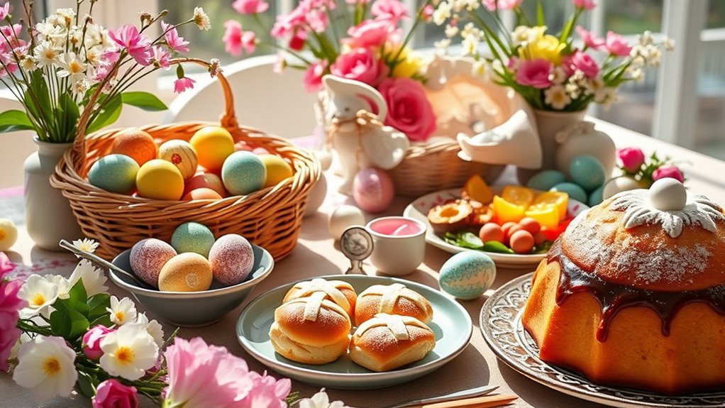 These dishes often accompany festive activities like Easter egg hunts, and the meal is complemented by colorful spring flowers that celebrate renewal. The combination of hearty foods and vibrant decorations creates a memorable, meaningful Easter breakfast experience. Traditional dishes play an essential role in reinforcing cultural identity and community bonding during this special holiday.