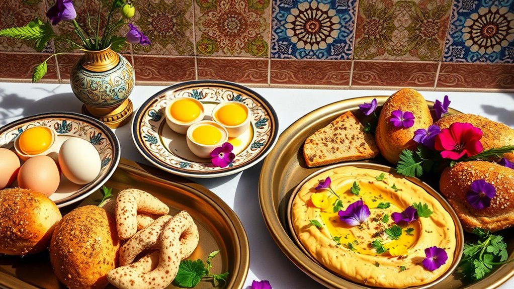 Adding active listening when sharing recipes or stories about these dishes can enhance the sense of connection and understanding during your meal. These elements bring warmth and complexity, making your Easter breakfast memorable. Middle Eastern flavors pair beautifully with eggs, cheeses, and bread, creating a feast that’s both comforting and exotic. By blending these spices and ingredients, you add a lively, aromatic dimension to your holiday morning.