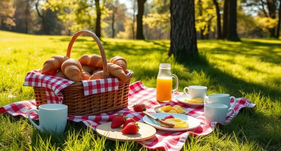 You’ll find that regional variations in Easter breakfast customs reflect local cultural influences, even within the same country. For example, in the South, people might enjoy sweet potato casserole or ham, while in the North, bagels and smoked fish could be more common. These differences show how local traditions shape your Easter morning, making it a unique celebration in each region. Embracing these customs highlights the rich diversity within one country’s Easter festivities.
