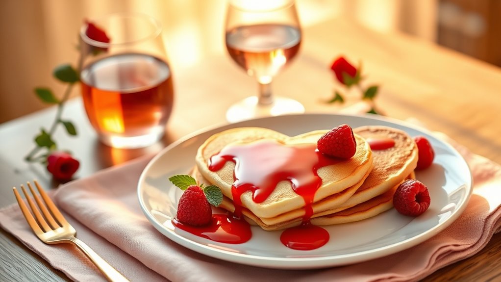 Imagine waking up to a breakfast that mirrors your love’s beauty. You can serve gluten-free pancakes topped with fresh berries or create a romantic fruit platter with melons, strawberries, and kiwi. These easy, heartfelt options show thoughtfulness and care. Gluten-free pancakes add comfort, while vibrant fruit displays ignite the senses. Start the day with love and deliciousness, making every morning feel special and memorable.