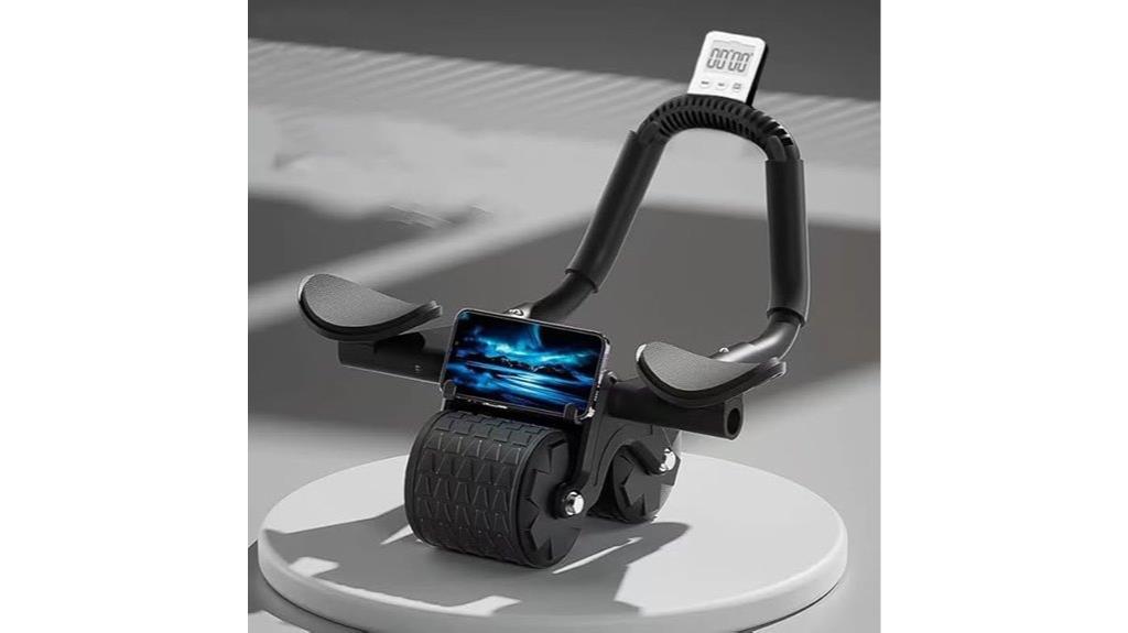 If you’re looking to boost your core strength with a user-friendly and effective tool, the 4 Ab Roller Wheel with Timer & Knee Mat stands out. It features an automatic rebound with a high-elasticity silent spring, helping beginners reset smoothly. Dual widened wheels provide stability and support up to 800 lbs, making workouts safer. Upgraded with elbow pads for comfort and stability, it minimizes arm fatigue and injury risk. Made from multi-layer, noise-reducing materials, it’s gentle on floors. Compact and versatile, it targets abs, arms, back, and hips—perfect for all fitness levels. The included timer and knee mat enhance your workout experience, making it a valuable addition to your home gym.