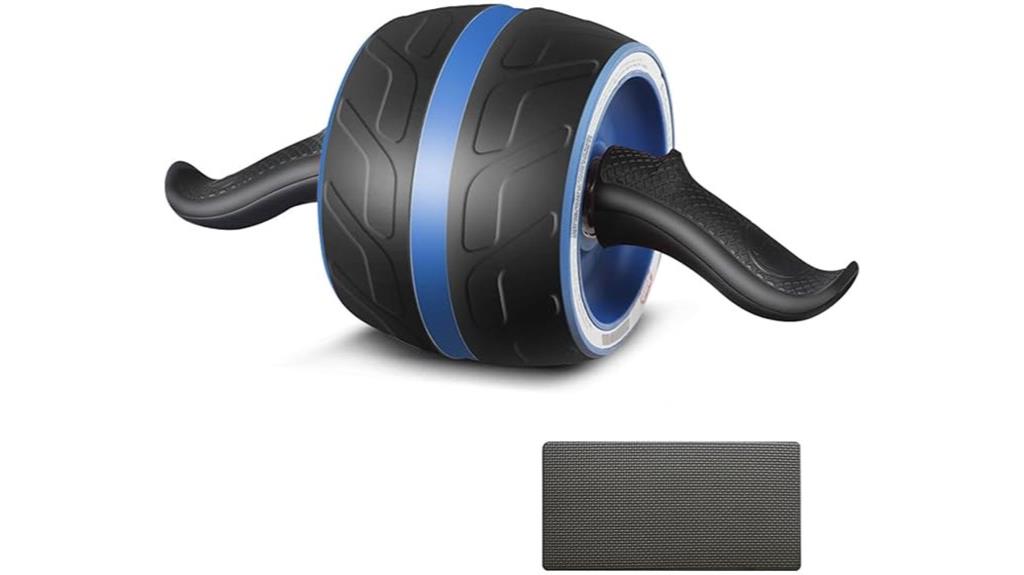 Evaluating the price and value of an ab roller wheel with knee pads helps you make a smart purchase that suits your budget and fitness goals. Comparing prices across brands and models guarantees you’re getting the best deal for your money. Higher-priced rollers often come with premium materials, better stability, and extra accessories like knee pads or elbow supports, which can enhance your workout experience. On the other hand, budget options might save you upfront but could lack durability or stability, leading to higher costs over time due to replacements. It’s important to balance cost with features like weight capacity, wheel width, and comfort accessories. Reading customer reviews can also give you insight into the actual performance and value relative to the price.
