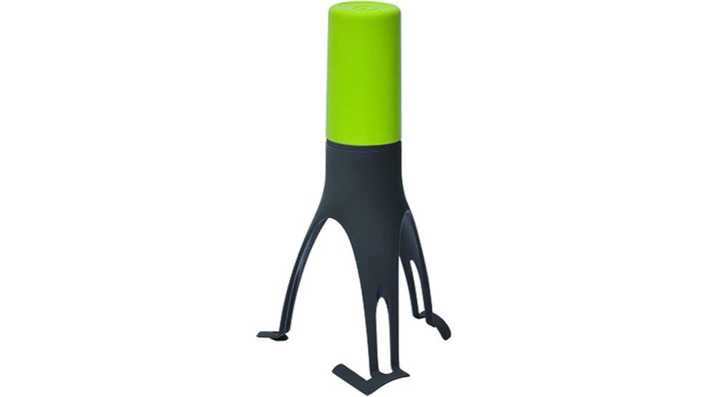 Stirr stands out as a compact, hands-free stirrer designed primarily for those who cook with liquids like sauces, puddings, and soups. Its innovative, lightweight design saves time by automatically rotating in your pan, with three adjustable speeds indicated by bright LED lights. The removable, heat-resistant nylon blade is perfect for non-stick cookware and easy to clean. Powered by 4 AA batteries, it’s cordless and simple to operate via push buttons. While it excels with liquids, it’s less effective for thick or chunky foods. Overall, Stirr offers a practical, space-saving solution that simplifies stirring tasks, making it a handy addition to any kitchen.