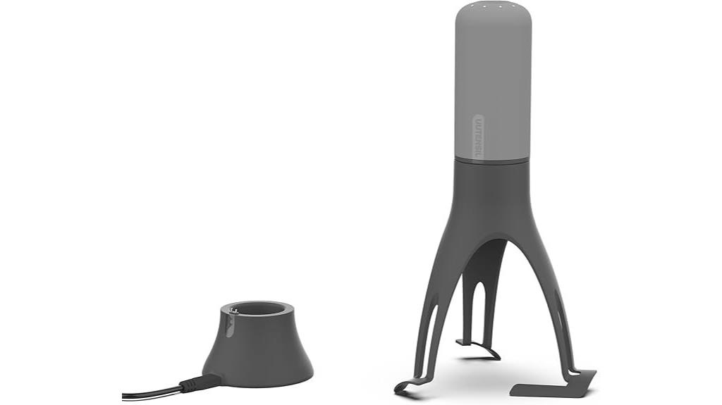 For home cooks seeking a compact and portable automatic pan stirrer, the Stirr+Timer USB Rechargeable model offers a stylish and lightweight option. Its teal body with grey nylon legs is both attractive and functional, weighing just 4.8 ounces for easy handling. It features three adjustable speeds and a customizable timer from 1 to 10 minutes, perfect for precise stirring control. With up to 4 hours of continuous operation on a quick 2-hour charge, it’s ideal for most cooking sessions. The heat-resistant legs withstand up to 120°C, and the dishwasher-safe removable parts simplify cleanup. It’s best suited for thin liquids like sauces and soups.