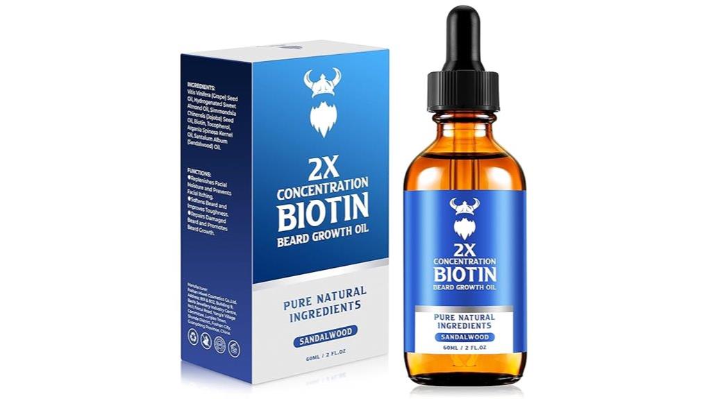 Have you ever wondered how much biotin you should take for ideal beard growth? The recommended dosage varies from 2,500 mcg to 10,000 mcg daily, depending on individual needs and the supplement’s formulation. Higher doses, like 10,000 mcg, are popular for supporting thicker facial hair, but they can sometimes cause skin breakouts or digestive issues. On the other hand, lower doses, such as 2,500 mcg, are better suited for sensitive skin or first-time users, minimizing adverse reactions. Consistency is key—taking the right dose daily over several weeks or months helps you see noticeable results. However, it’s important to take into account your personal health and consult a healthcare professional to determine the most suitable biotin level for your beard growth goals.