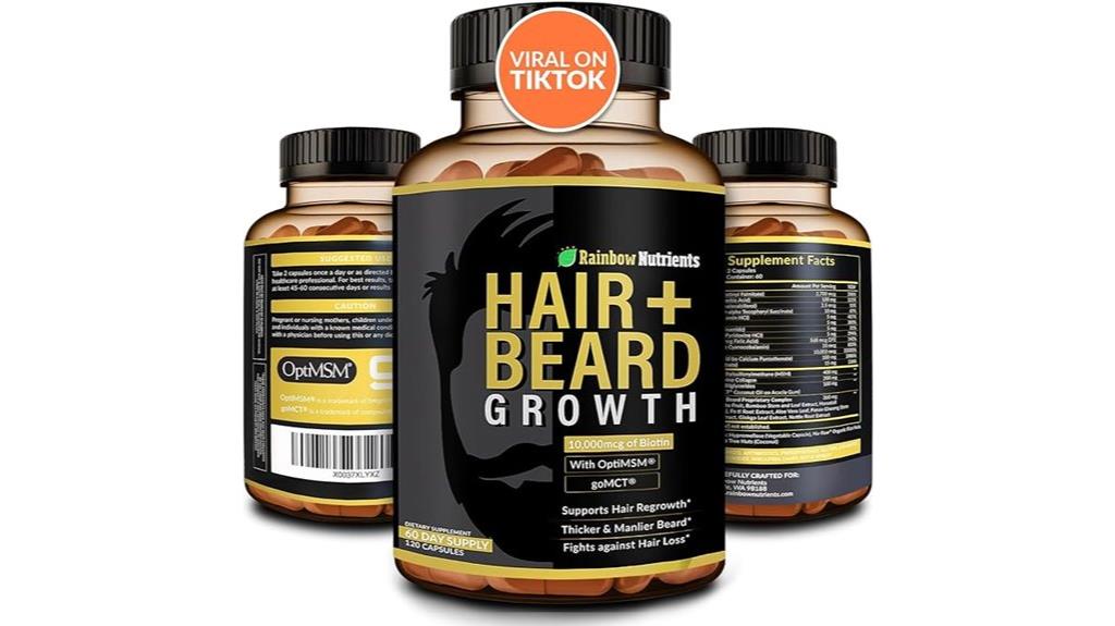 When considering if beard growth vitamins work for all skin and hair types, I see three key factors: individual variation, nutrient absorption, and consistency. While these vitamins aim to support growth universally, I know results can differ based on your unique skin and hair characteristics. I recommend consulting a dermatologist to determine what’s best for your specific needs. Remember, patience and proper care make a big difference.
