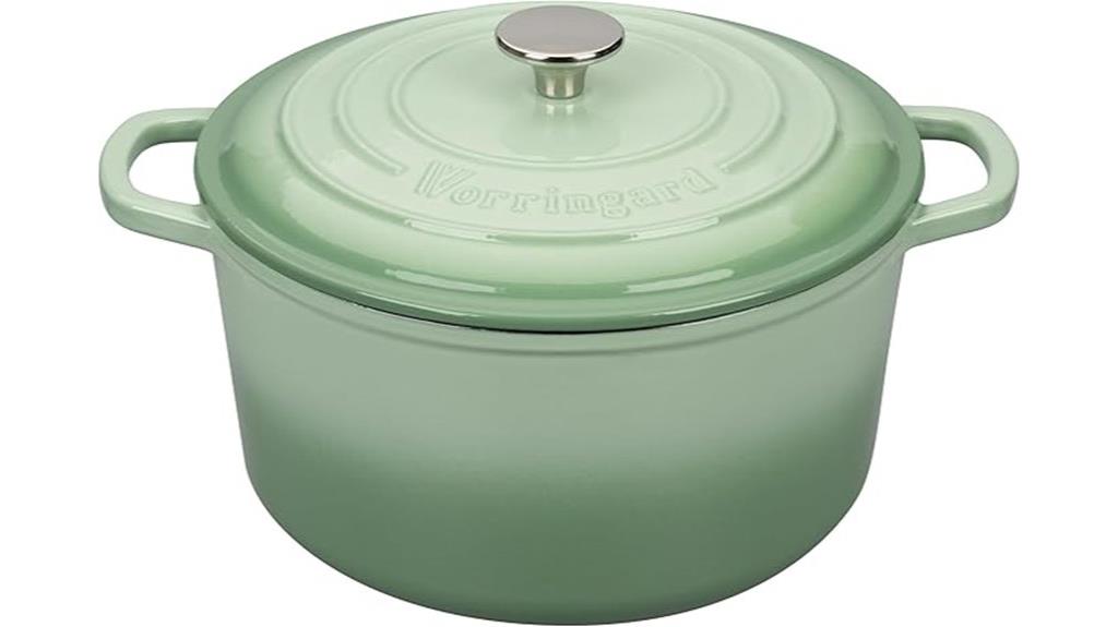 Best For: home cooks seeking a versatile, durable, and stylish enameled cast iron Dutch oven suitable for various culinary techniques and outdoor cooking.