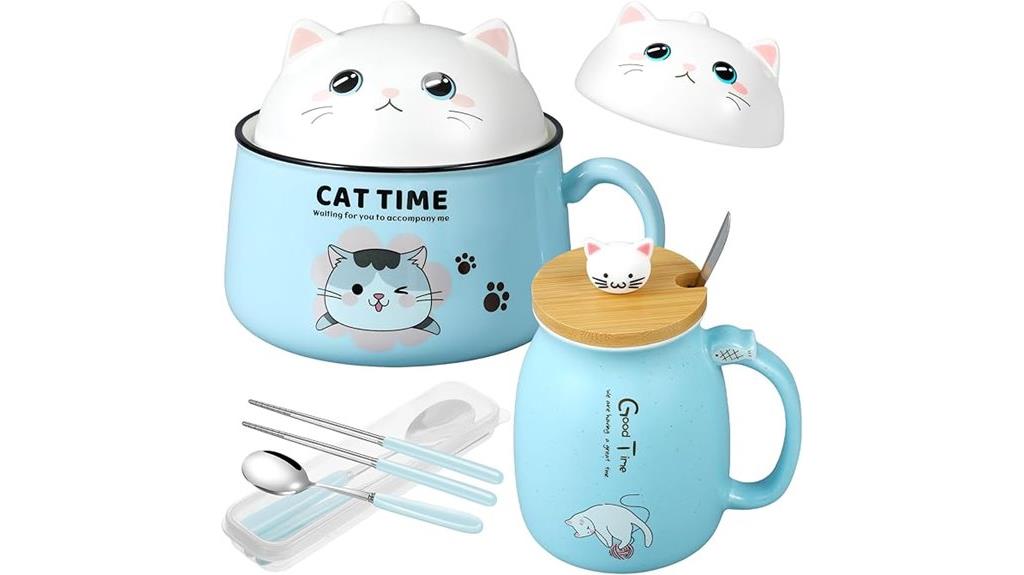 Best For: cat lovers, ramen enthusiasts, and those seeking a cute and practical kitchenware set for daily use or gifting.