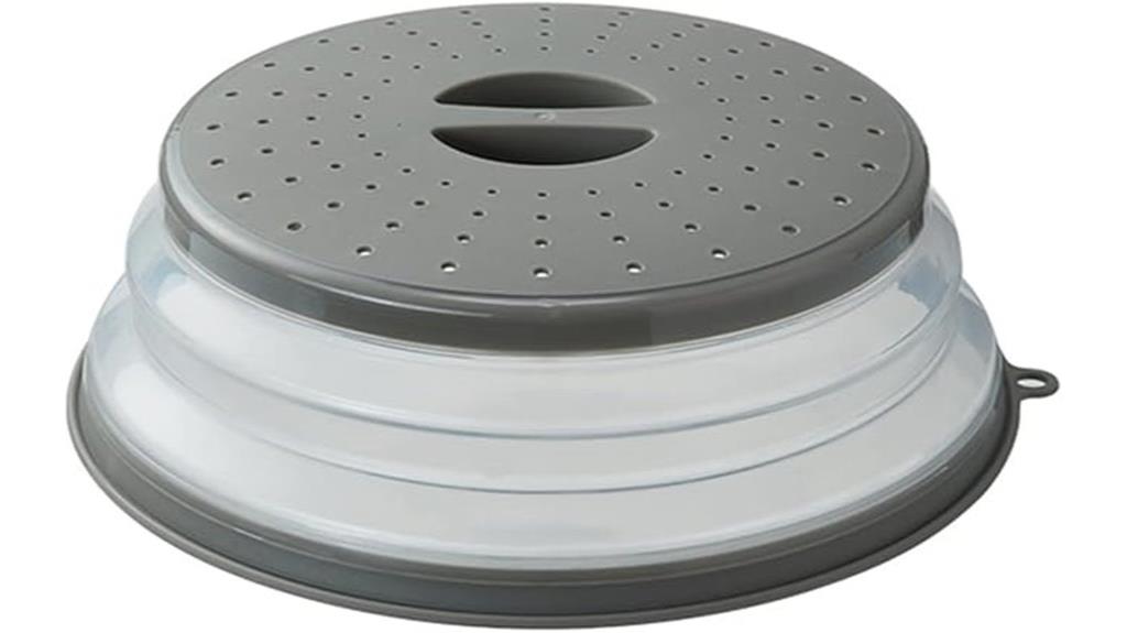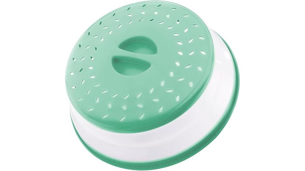 Best For: anyone seeking a space-saving, versatile microwave cover that prevents splatters, doubles as a colander, and is easy to clean.
