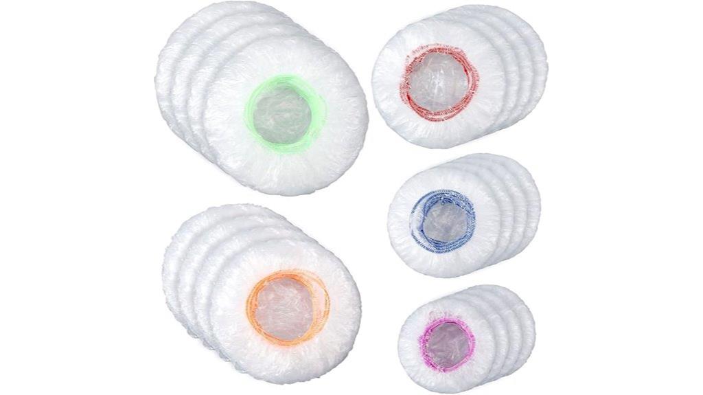 If you’re looking for versatile food covers that combine convenience and reusability, Cunhill 200 Pcs Plastic Bowl Covers with Elastic is an excellent choice. These covers come in five sizes, from about 10 to 30 cm, and are color-coded for easy selection. Made from BPA-free, elastic plastic, they stretch to fit various bowls, dishes, and containers, creating airtight seals that keep food fresh longer. They’re reusable, durable, and dishwasher safe, making them an eco-friendly alternative to plastic wrap. Perfect for leftovers, outdoor picnics, or microwave use, these covers help organize your kitchen while protecting your food efficiently.