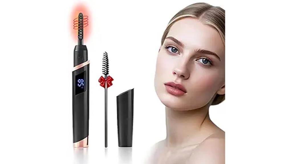Anyone looking for precise control and safety in their eyelash curling routine will appreciate the LED display on this rechargeable electric heated eyelash curler. It heats up in just 10 seconds, offering customizable temperature settings that are clearly shown on the LED screen, ensuring tailored results for different lash types. The curved brush head fits lashes snugly, while thermal insulation slots protect your eyelid from heat. Compact and portable, it’s perfect for travel or daily use. With a 2-hour charge, you get up to 65 minutes of flawless curling, combining safety, convenience, and precision in one sleek device.