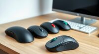 Ease of use is essential when selecting a rechargeable heated eyelash curler, as it determines how quickly and comfortably I can achieve my desired look. I look for devices with intuitive controls, like one-touch operation and simple temperature adjustments, so I don’t waste time figuring out how to operate them. Clear indicators such as LED displays or heat-sensitive silicone pads let me know when it’s ready, which boosts safety and confidence. An ergonomic design with a comfortable grip and balanced weight makes handling easier and reduces fatigue during use. Fast heat-up times, usually within 8-10 seconds, are a huge plus for busy mornings. Safety features like auto shut-off, anti-scald protection, and thermal insulation give me peace of mind, ensuring safe and effective styling every time.
