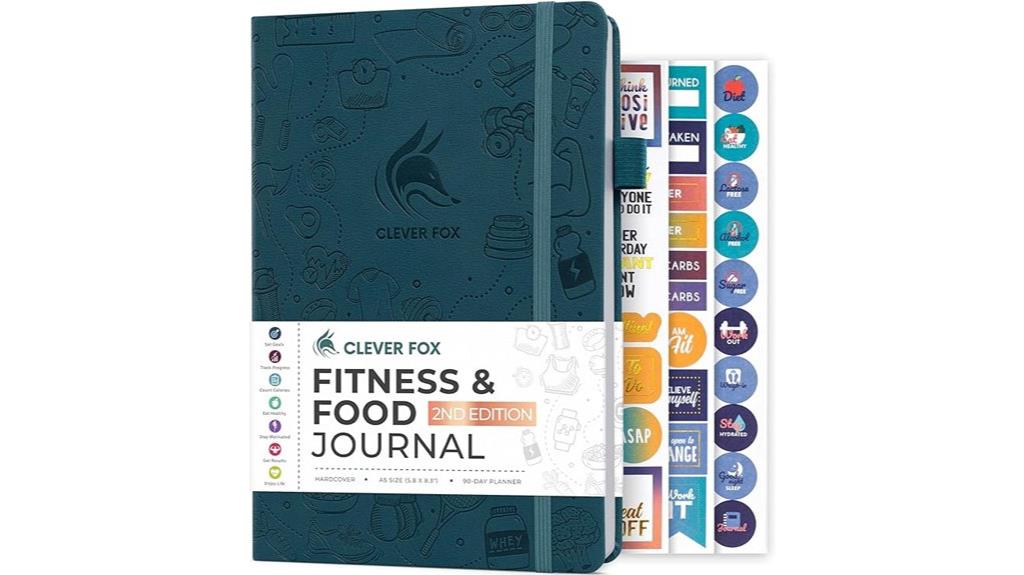 The Clever Fox Fitness & Food Journal stands out as an ideal choice for anyone seeking a complete, undated planner to track both nutrition and workouts. Its compact A5 hardcover design makes it portable and easy to use daily. I appreciate the detailed sections for logging meals, exercises, water intake, sleep, and mood, helping me stay mindful of my habits. The included stickers, goal-setting tools, and monthly reviews motivate me to stay consistent. Made with high-quality vegan leather and thick paper, it feels durable and premium. This journal supports my long-term health goals by promoting accountability, reflection, and mindful decision-making, all within a sleek, user-friendly format.