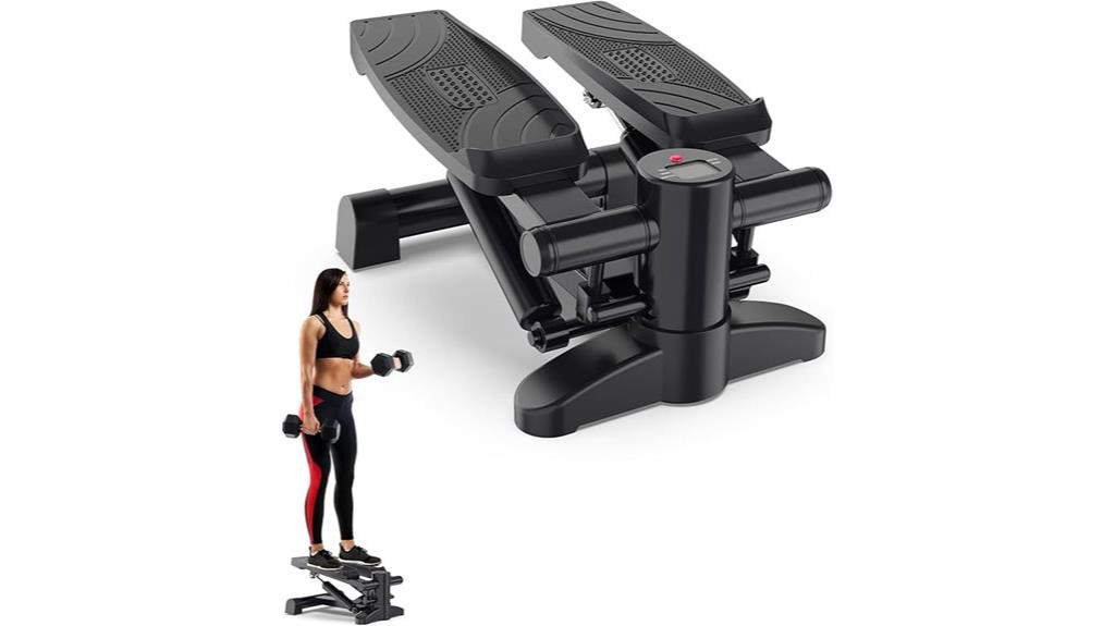 Resistance adjustment plays a key role in customizing your workout to match your fitness level and goals. It lets you easily increase or decrease the difficulty by changing hydraulic or air pressure within the machine’s resistance system. Many mini steppers have a tension knob or lever, making it simple to fine-tune resistance quickly without disassembly. Properly adjustable resistance is essential for accommodating different fitness levels, from beginners doing low-impact exercise to advanced users seeking a higher calorie burn. Limited resistance options can hinder progress, so choosing a machine with multiple levels or easy adjustability is wise for long-term use. Consistent resistance control also helps target specific muscle groups and prevents workout plateaus by varying intensity throughout your sessions.