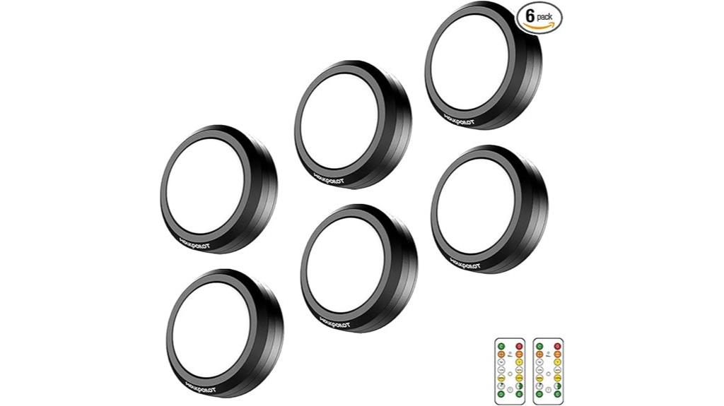 Looking for a versatile lighting solution that combines easy installation with customizable control? The HOLKPOILOT Puck Lights with Remote Control (6 Pack) fit that bill perfectly. These sleek, battery-operated LED lights are about 3.5 inches in diameter and easy to mount with included adhesive pads—no wiring needed. They offer adjustable brightness and color modes, including warm, cool white, and neutral tones, all controllable via remote or touch. Perfect for various indoor spaces like kitchens or bedrooms, they provide bright, non-dazzling illumination. With a simple setup and flexible placement options, they’re a convenient choice for anyone wanting hands-free, customizable lighting.