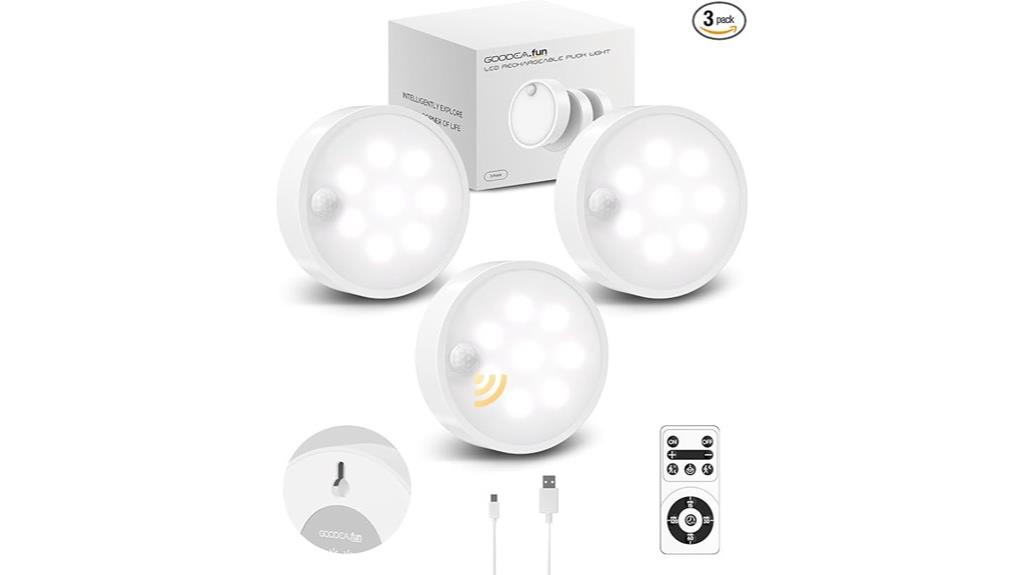 Motion Sensor Rechargeable Puck Lights (3 Pack)