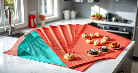 If you’re looking for effective, pet-safe enzymatic carpet stain removers, I’ve found many that work well and are safe around pets and kids. These products use natural enzymes or bio-enzymes to break down organic stains and neutralize odors, preventing re-soiling. They’re suitable for carpets, upholstery, and hard floors, often with pleasant scents. If you want detailed options and tips, there’s plenty more you’ll want to discover.