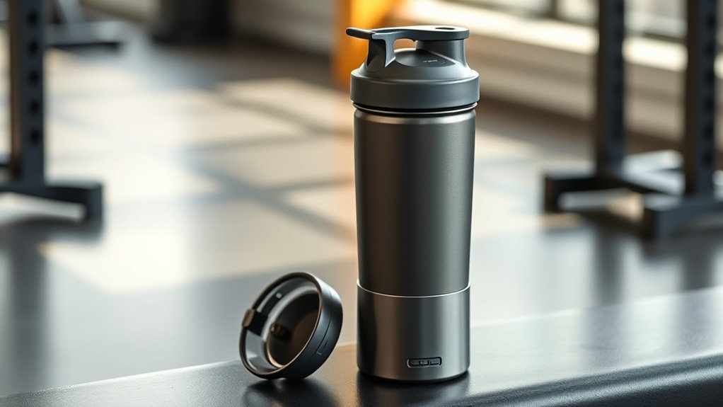The effectiveness of mixing in a protein shaker bottle depends largely on the design and quality of its internal components. Mesh nets and wire whisks are key, as they break up clumps and create smooth drinks. The size and shape of these elements matter—coil springs and mesh screens each mix differently, influencing how well powders blend into liquids. A wider opening and a secure lid improve agitation and prevent leaks during vigorous shaking. Some bottles feature dual or multiple mixing mechanisms, which help blend thicker ingredients like oats or protein powders more thoroughly. Ultimately, the quality and placement of these components determine whether your shake will be lump-free and evenly mixed, making it a vital factor when choosing a shaker bottle.
