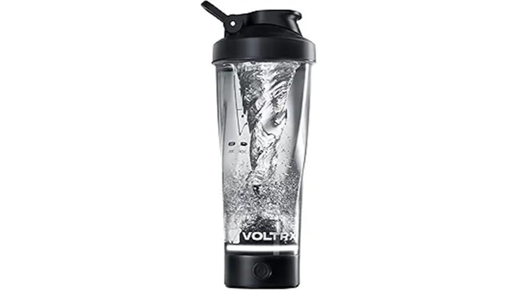 The VOLTRX VortexBoost Electric Shaker Bottle stands out for anyone who values quick, smooth mixing without the hassle of manual shaking. It achieves clump-free drinks in just 30 seconds with two scoops of powder and 12oz of liquid, making it perfect for busy mornings. Made from BPA-free Tritan, it’s durable, safe, and stylish, fitting most car and gym cup holders. The quiet motor guarantees discreet blending, and the removable base makes cleaning a breeze. With a USB-C rechargeable battery lasting up to two weeks, it’s ideal for on-the-go use. Overall, it’s a reliable, high-performance shaker that combines convenience with quality.