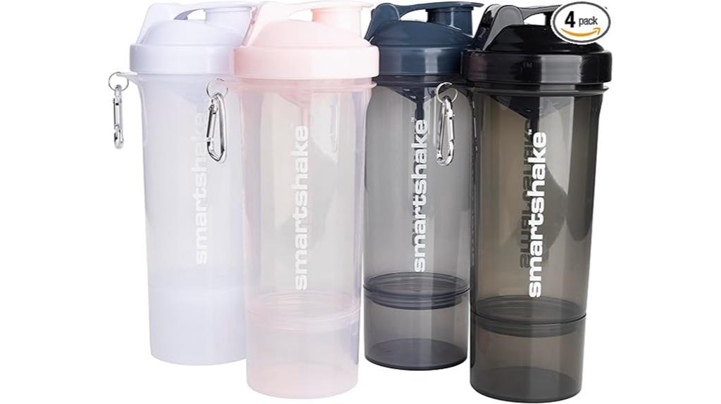 Best For: active individuals and fitness enthusiasts seeking compact, reliable shaker bottles with convenient storage options for on-the-go hydration and supplement needs.