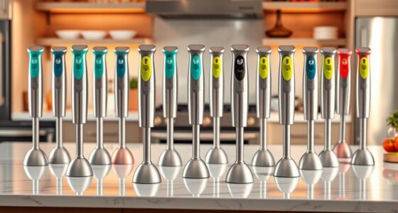 Selecting a protein shaker bottle that’s safe for daily use requires paying close attention to the materials it’s made from. I always look for BPA-free, food-grade plastics like Tritan or polypropylene, which prevent harmful chemical leaching. It’s essential to verify that all contact surfaces meet food safety standards such as FDA or EU regulations, ensuring the materials are safe for frequent use. Certifications indicating the absence of substances like BPS, PVC, DEHP, or phthalates give me extra confidence. I also check if the bottle is dishwasher safe and resistant to temperature changes without degrading or releasing toxins. Ultimately, choosing a bottle with documented compliance to safety standards helps ensure that it’s truly safe for my health and repeated contact with my drinks.