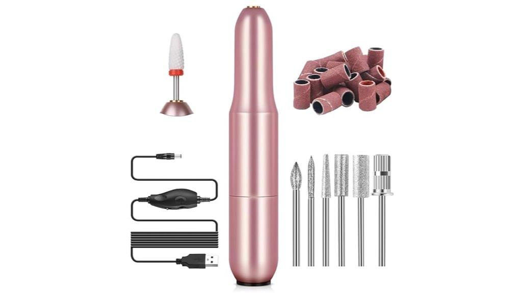 SAVILAND’s Electric Nail Drill stands out for its portability, making it ideal for those who want professional-quality manicures on the go. It operates at up to 20,000 RPM and comes with 6 bits and 51 sanding bands, perfect for grinding, carving, polishing, and gel removal. Its lightweight, ergonomic design ensures comfort during use, while the USB power option allows for easy charging via power banks, laptops, or car chargers. Though it’s great for home or travel, some users report cord wear over time. Overall, it’s a versatile, user-friendly device that delivers solid performance for beginners and hobbyists alike.