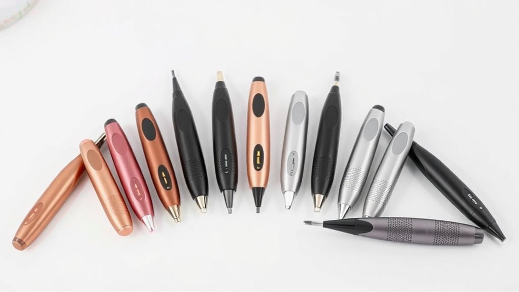 Ease of bit replacement is essential for maintaining an efficient and hassle-free manicure routine. I look for nail drills with a twist-lock system that lets me change bits quickly and securely without needing tools. It’s important that the device supports standard 3/32-inch drill bits, so I have plenty of options. I also check if the bit chamber or chuck is easy to access and designed to prevent bits from getting stuck or falling out. Clear labeling or color coding of bits helps me identify and insert them faster, saving time. Additionally, models with quick-release mechanisms or simple twist-and-lock features minimize downtime between changes. A user-friendly bit replacement system keeps my manicure process smooth and stress-free, making the whole experience much more enjoyable.