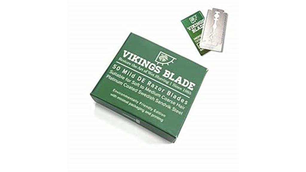 VIKINGS BLADE Double Edge Safety Razor Blades (50 Pack) stands out as an excellent choice for those seeking a premium, long-lasting shaving solution. Made from Swedish Sandvik 13C26 stainless steel and platinum-coated, these blades deliver sharp, precise, and smooth shaves. They typically last 5-7 shaves, with some users getting over 10, depending on technique and hair type. Many prefer them over multi-blade cartridges for fewer irritations and environmental benefits. Safe and easy to handle, they come with double wrapping for disposal. With high customer satisfaction and durability, these blades are a cost-effective, eco-friendly option perfect for daily shavers or beginners alike.