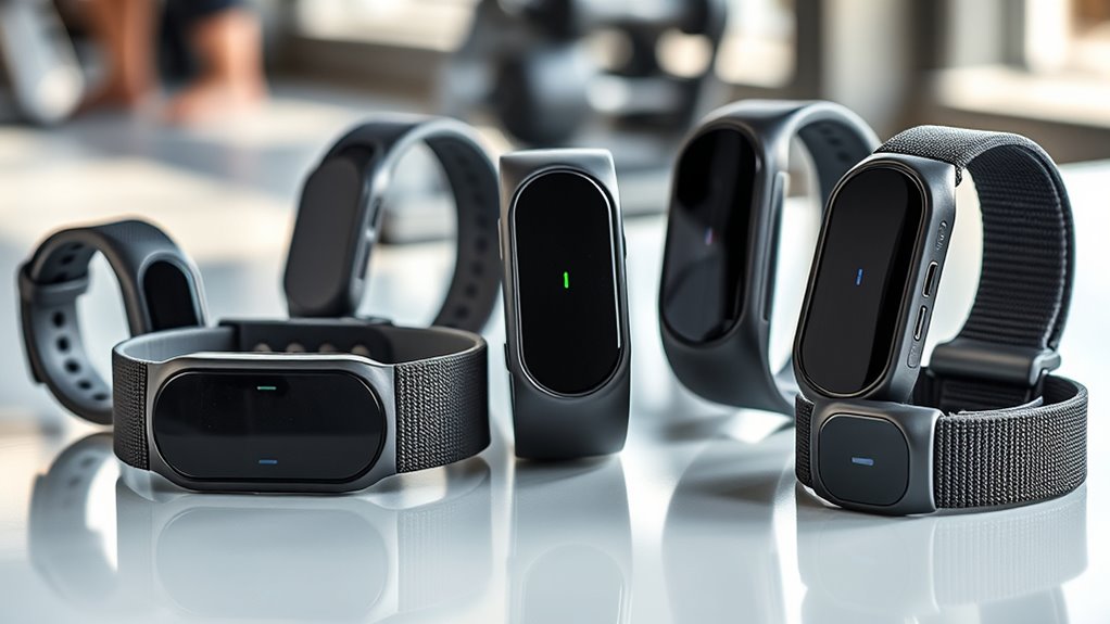 When choosing a wearable heart rate monitor arm strap, I focus on how well it pairs with my devices and fits comfortably during workouts. I also consider its accuracy, battery life, and water resistance to guarantee it meets my activity needs. Understanding these factors helps me pick a strap that’s reliable and suits my lifestyle.