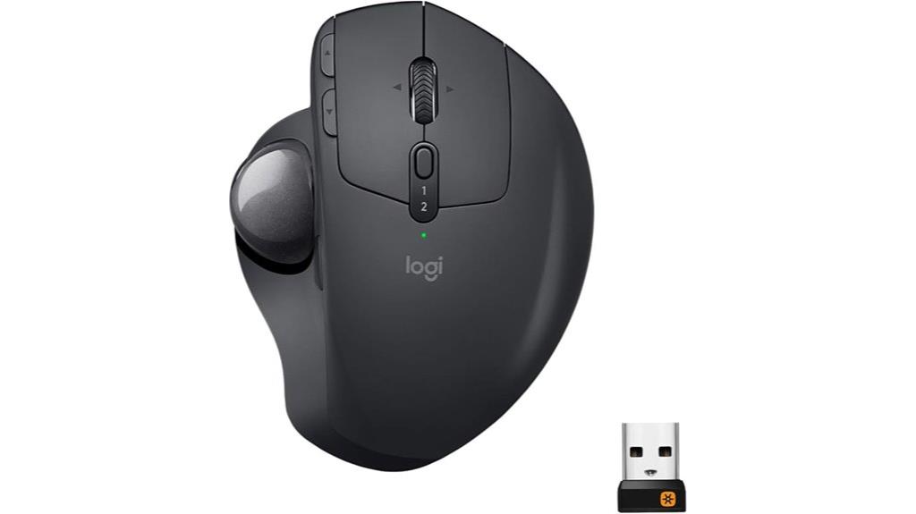 Best For: users with larger hands seeking a comfortable, durable wireless trackball mouse for long hours of productivity across multiple devices.